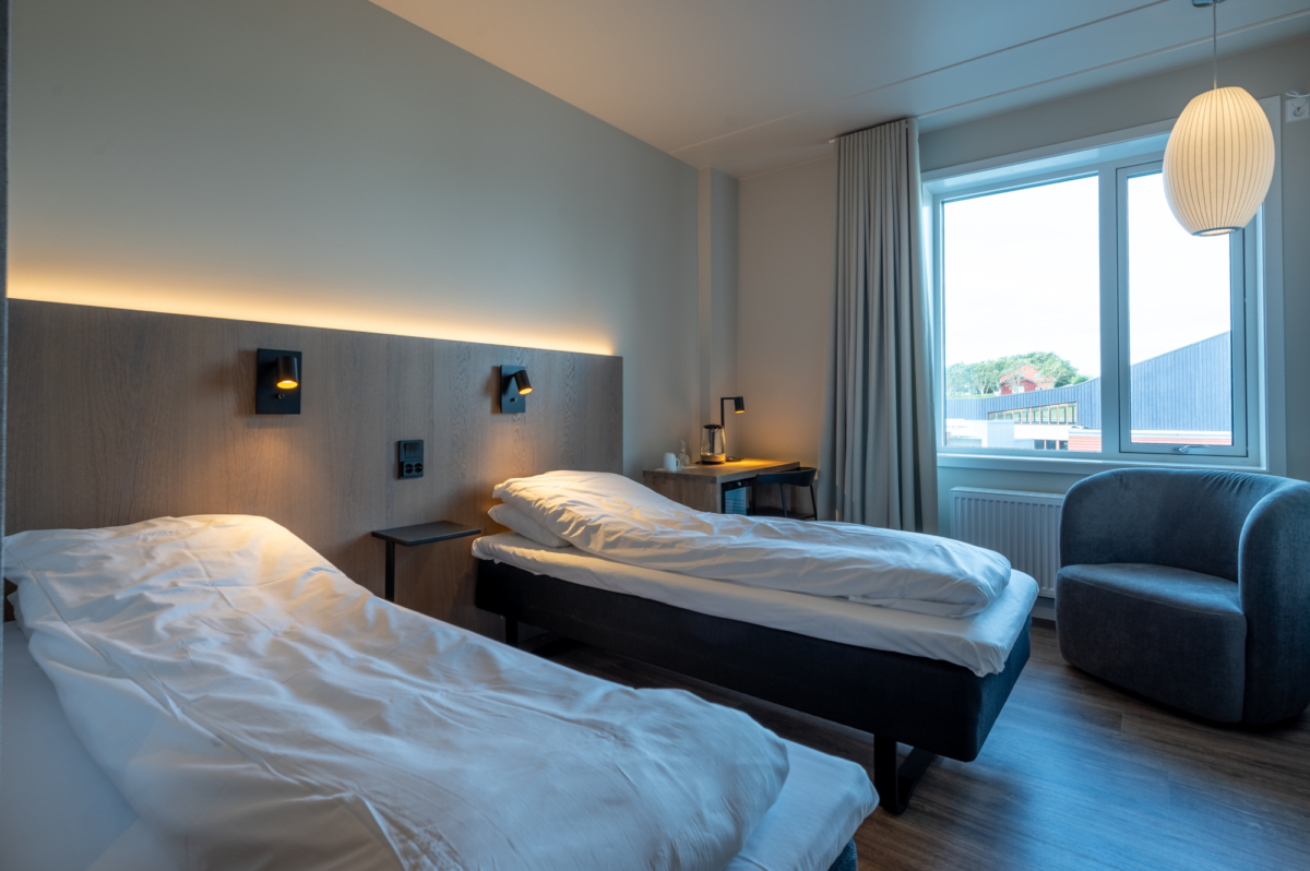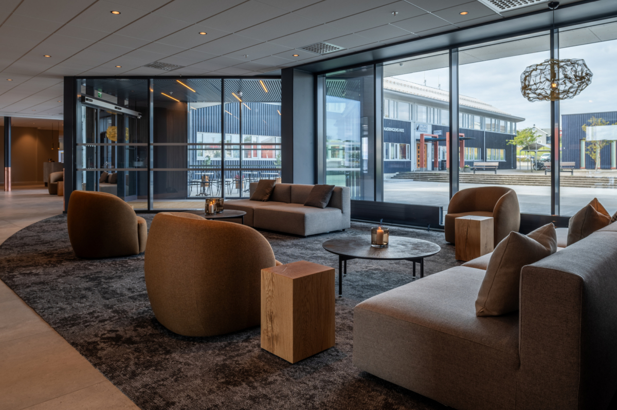 I 1. etasje finner vi adkomst og resepsjon for hotellet.