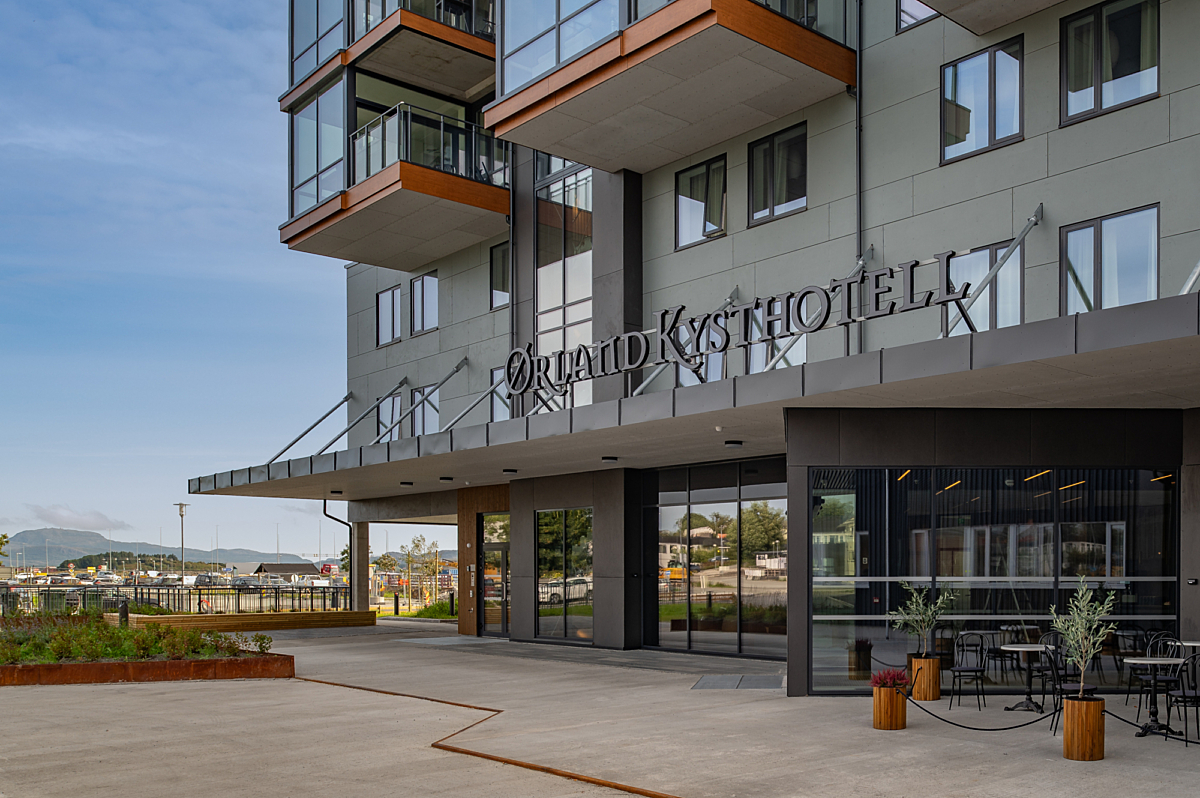 Materialmessig knyttes bygget opp mot eksisterende bygningsmasse og kulturhus. Det sentrale trapperommet utformes med en avslutning i topp som tar igjen linjene fra kultursalen, og som vil være en identitesmarkør for hotellet og leilighetene, og for Brekstad fra sjøsiden.