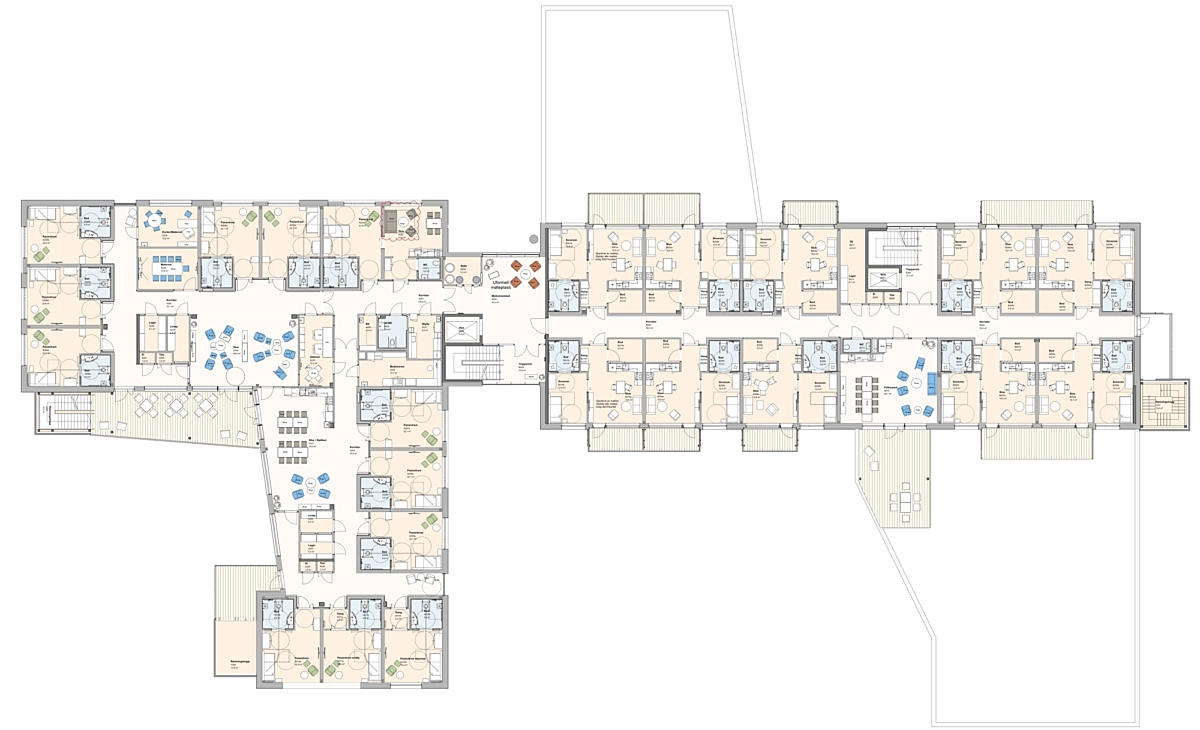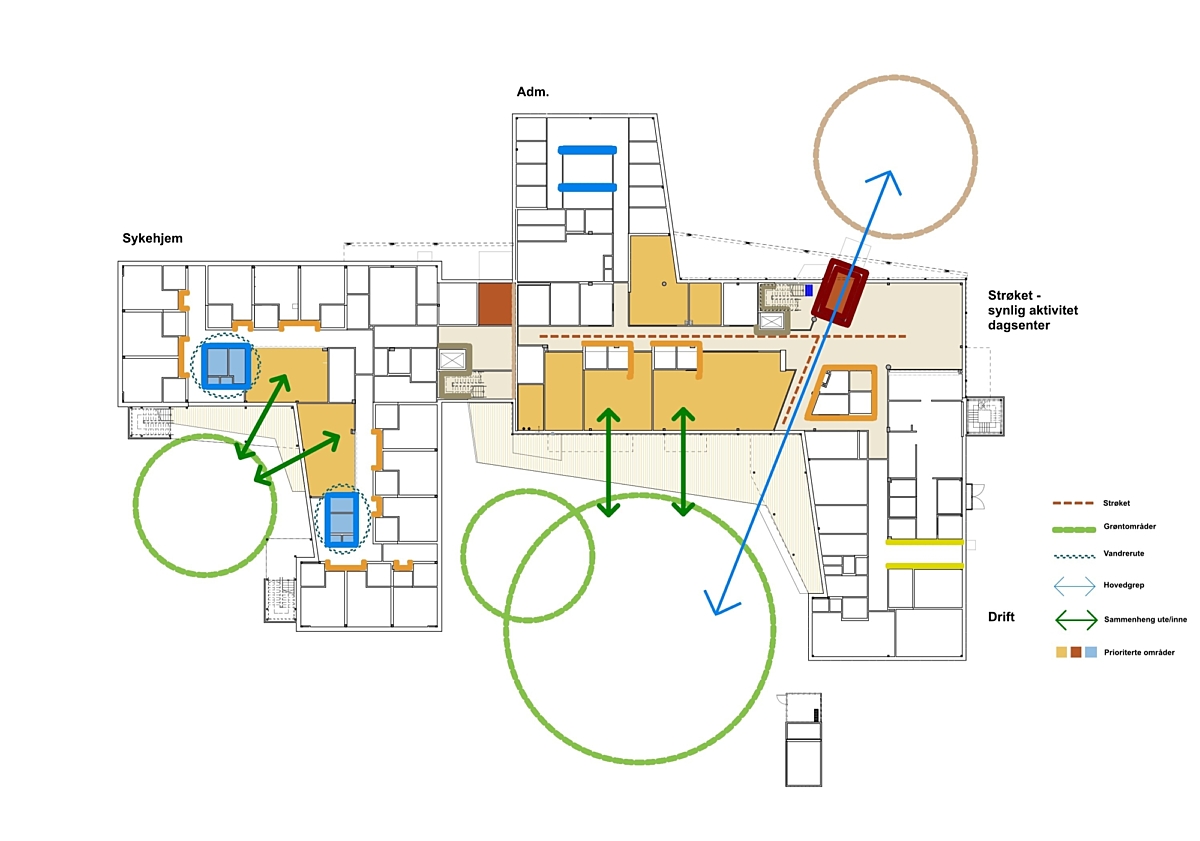 Farger er som vitaminer for hjernen, og med de ulike fargene og materialene som er valgt får beboerne på sykehjemmet ulike sanseinntrykk når de beveger seg rundt i bygget.