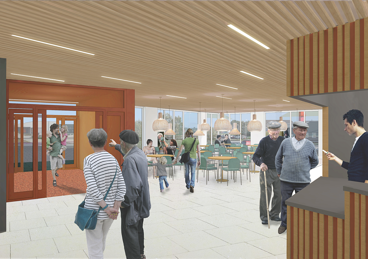 Nytt omsorgssenter i Aukra. 5300 kvadratmeter med aktivitetssenter, kafe, hovedkjøkken for kommunen, hjemmetjeneste, administrasjon, omsorgsboliger og pasientrom. 1. premie i begrenset prosjektkonkurranse i samarbeid med Agraff AS og HENT AS.