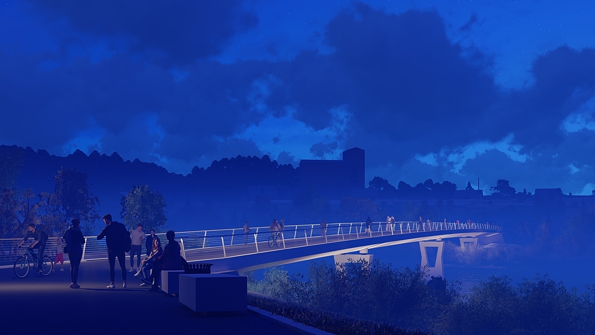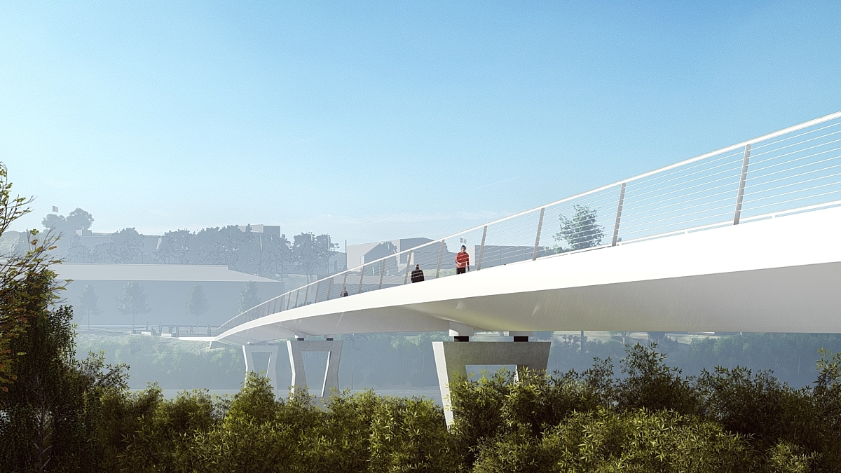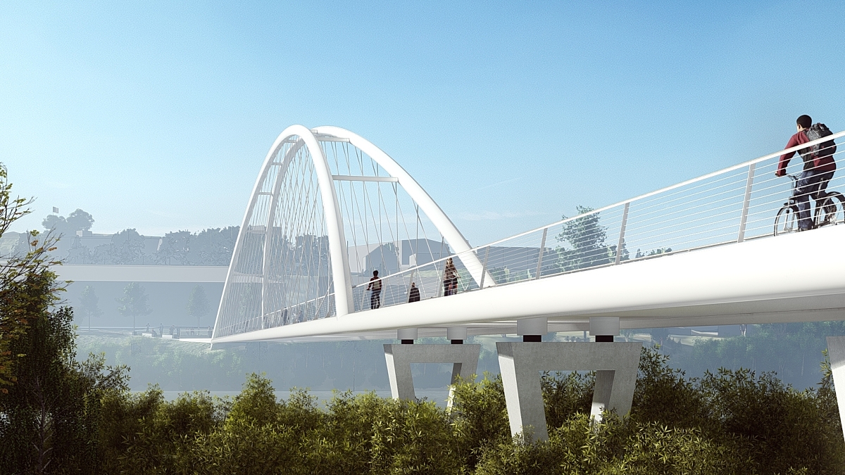 Nettverksbuebrua er løst som en konstruksjon som spenner over hele elva. Det statiske konseptet med strekkbånd i bunn og trykkbue i topp, med tynne strekkabler i et nettverk mellom disse, er arkitektonisk meget elegant og uttrykksfullt. Det arkitektoniske samspillet mellom nettverksbuebro og viadukt er viktig for løsningens helhet. Viadukten gis en utforming som “lander” nettverksbuebrua, og på denne måten forankrer hele konstruksjonen inn til brukaret mot terreng.