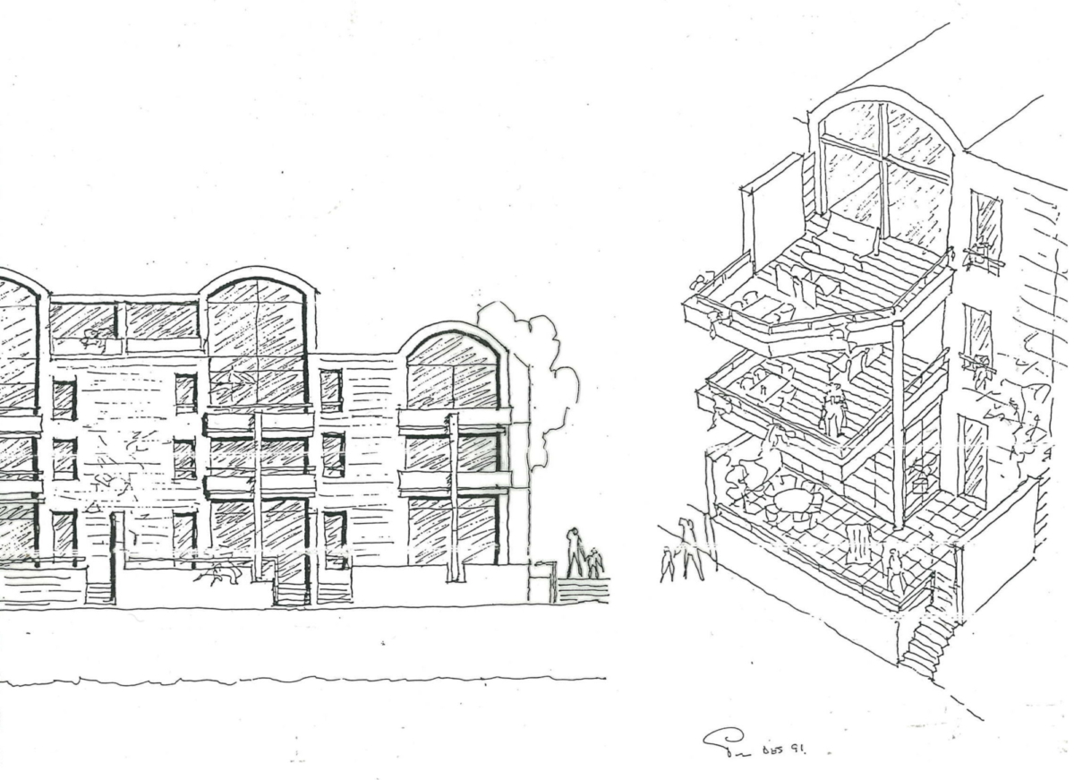 54 leiligheter, fordelt på 3 hus i 2 og 3 etasjer. Oppført i tre, med parkeringskjeller.