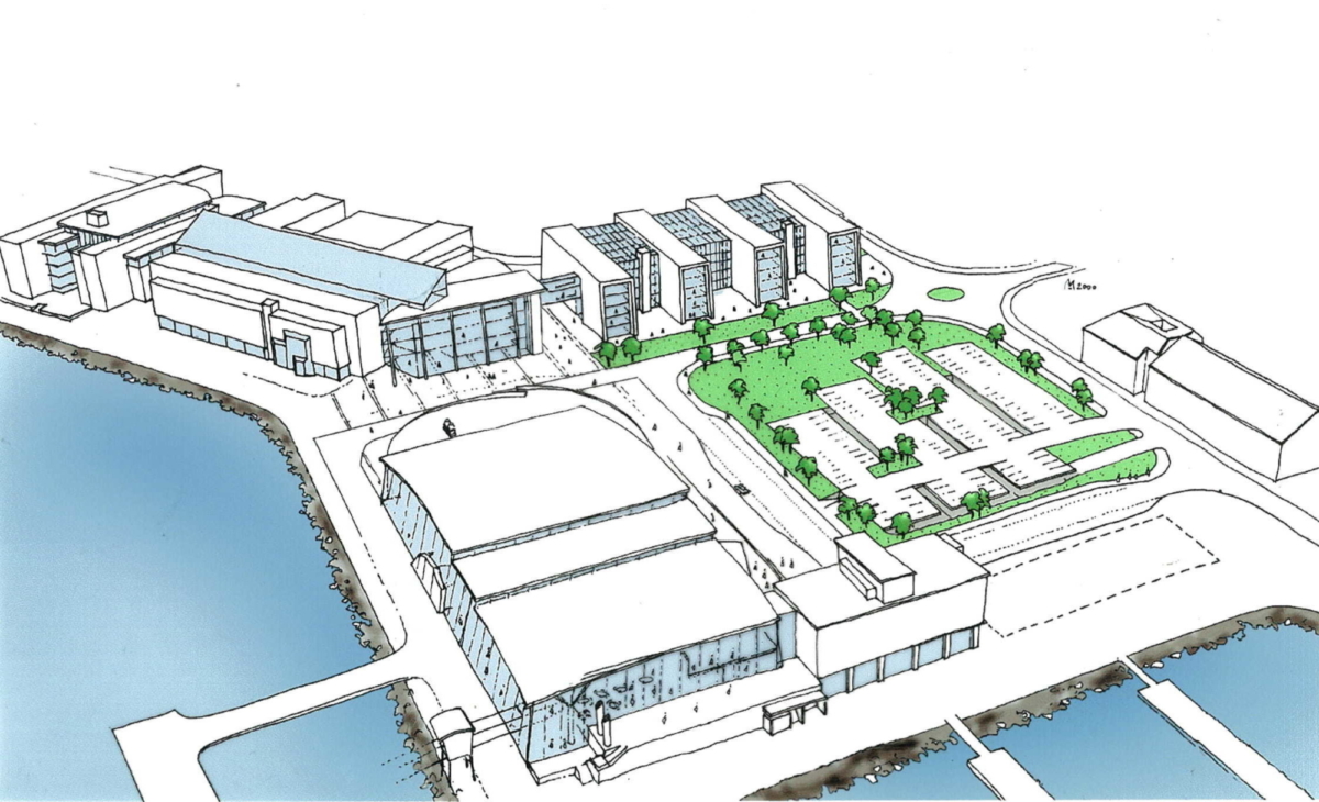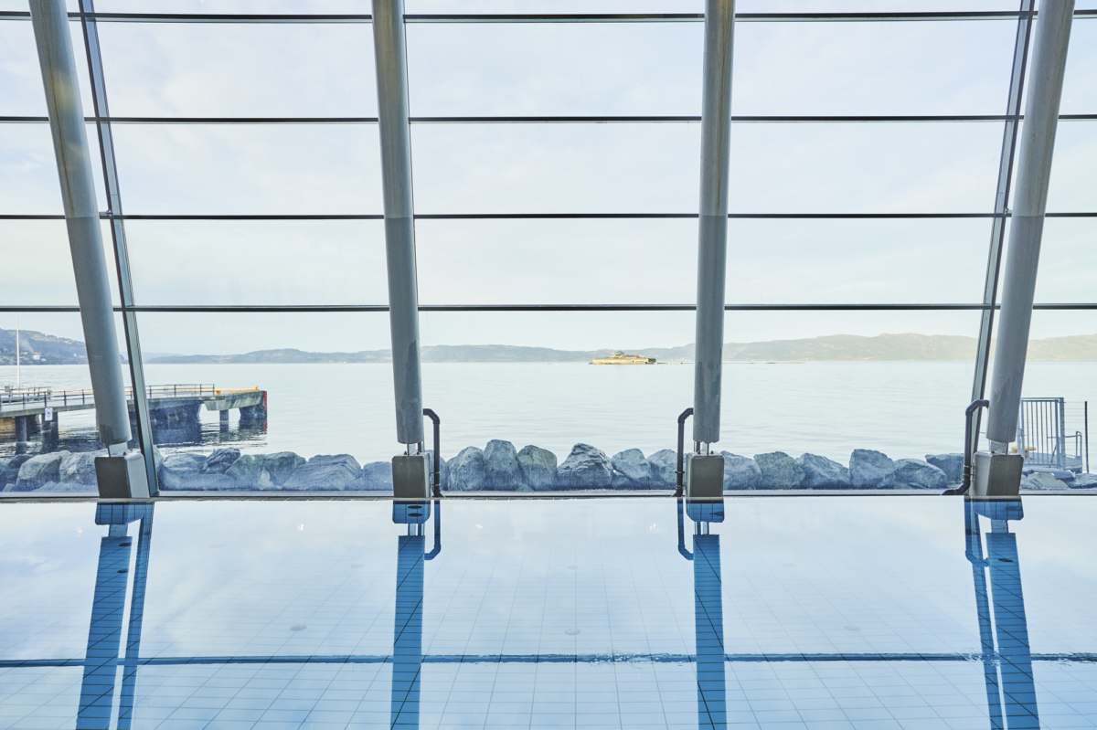 Et badeanlegg i overgangen sjø/land som åpner seg mot fjorden. Et familie-, helse-, velvære og konkurransebad samlet under et tak og i et «fjell».