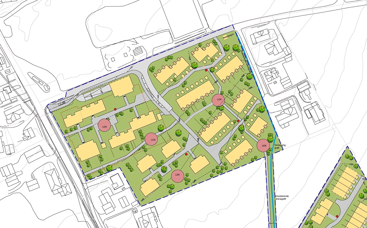 Utvikling av to boligområder i landlige omgivelser som forbinder eksisterende bomiljø til lokalsenter