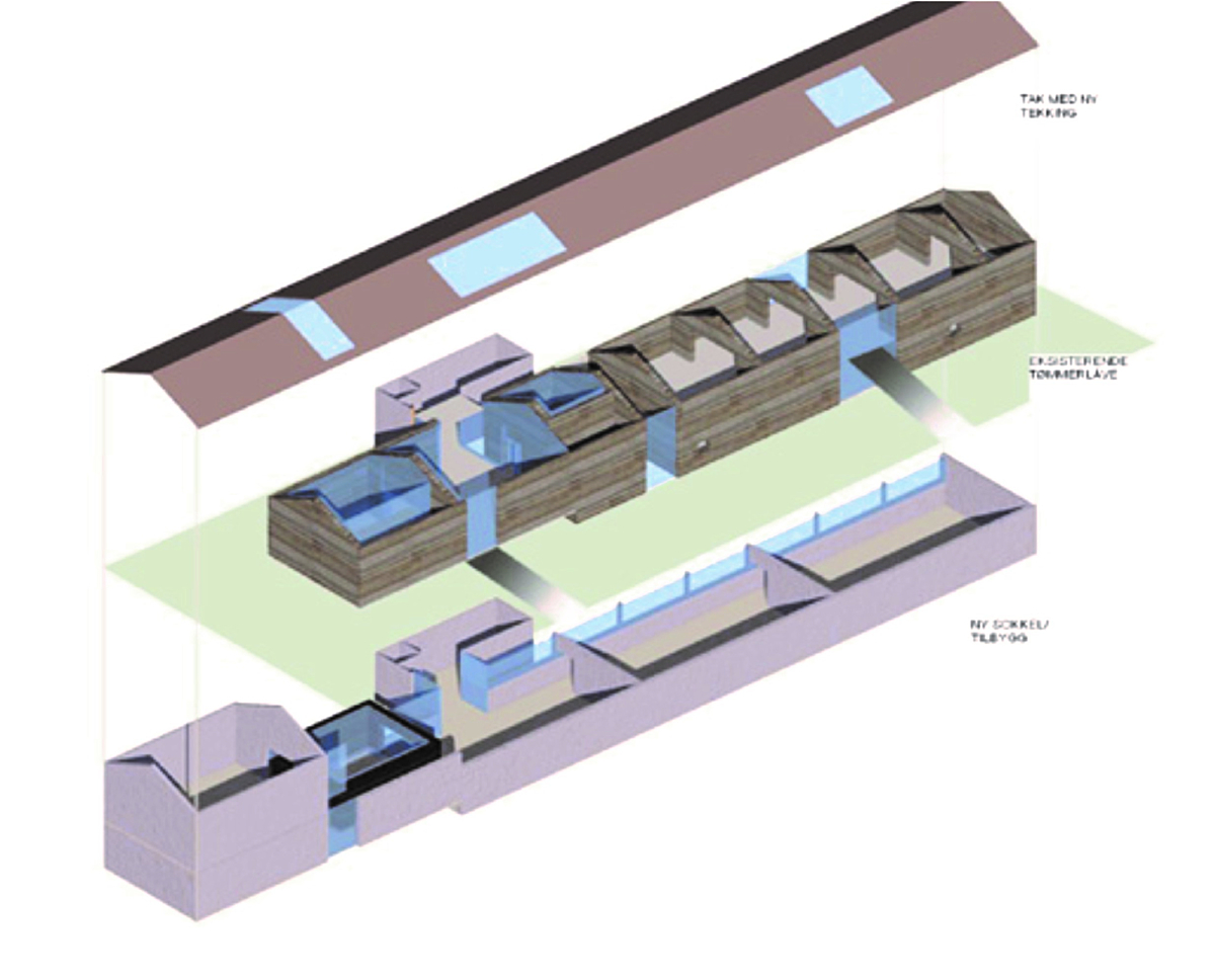 Byggeskikken er holdt i hevd ved å ta de gamle tømmerkassene i bruk på en ny måte og gi dem en ny funksjon. For å tilrettelegge for utstillingsarealer er bjelkelaget i tømmerkassene mellom fjøset (1.etg) og høyloftet i fjernet og det er innvendig bygd glassbokser som fungerer som klimaskille mot tømmeret. I tillegg er det oppført et tilbygg i massivtre som fungerer som resepsjon og kafe` og en sokkeletasje for den faste utstillingen i støpt i betong.