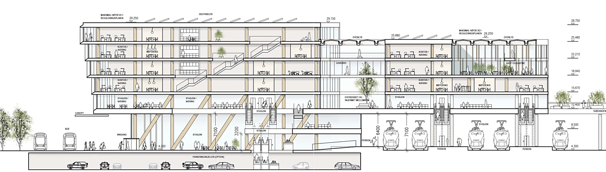 Dette gjøres i tett samarbeid med Bane NOR. Det er et komplekst plan – og designprogram som foreligger for nye Trondheim Stasjonssenter. Ønsket er å skape et multimodalt transportknutepunkt, som kan styrke byens identitet og skape attraktive opplevelser for innbyggere og gjester i Trondheim. Samtidig skal stasjonssenteret bli et forbilde på klimavennlig byutvikling og grønn mobilitet.