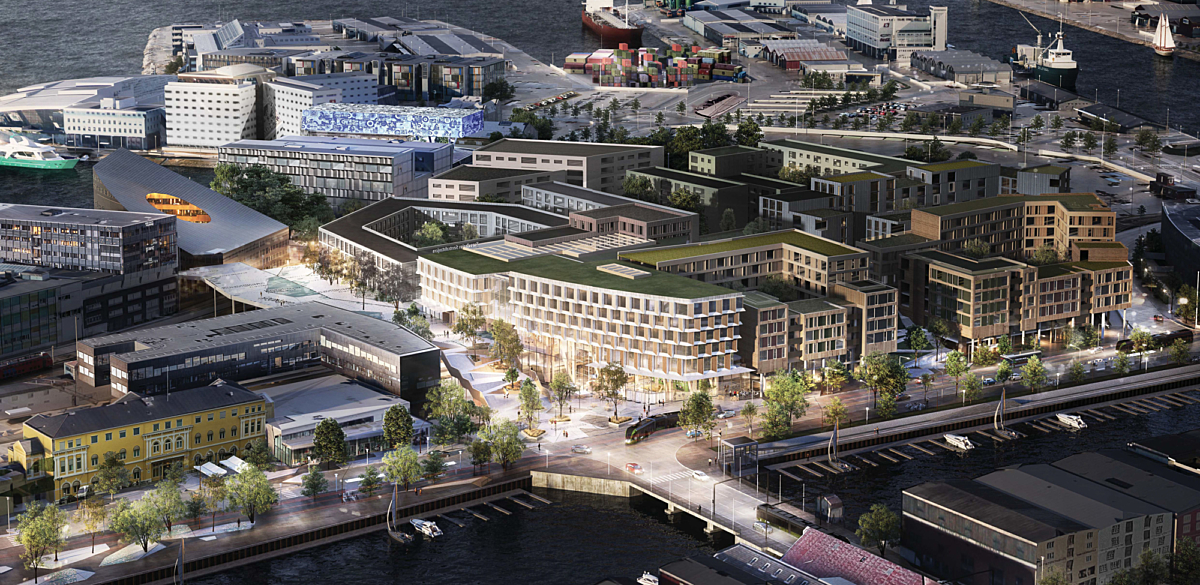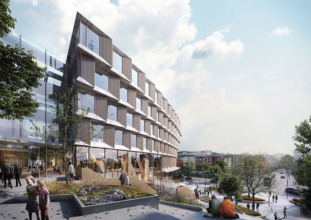 Også de helt spesielle fasadene, som gir solavskjerming til hele bygget, vil bli forhåndsprodusert i moduler. Dette vil forenkle monteringen på bygget. Bygget blir også BREEAM NOR- sertifisert med ambisjoner om Excellent og designet er gjort med hensyn til flere av FN’s bærekraftsmål.