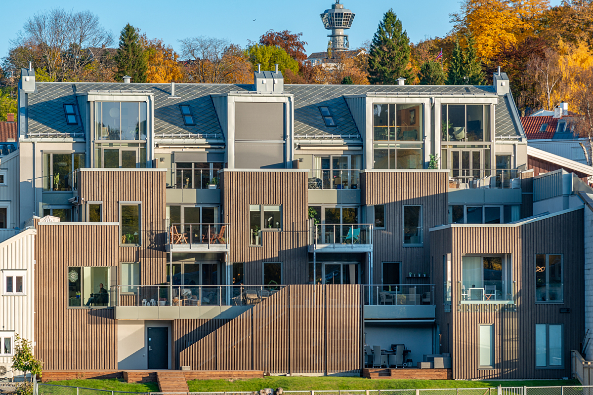 Bygget består av 12 boligenheter med p-plasser i sokkel.